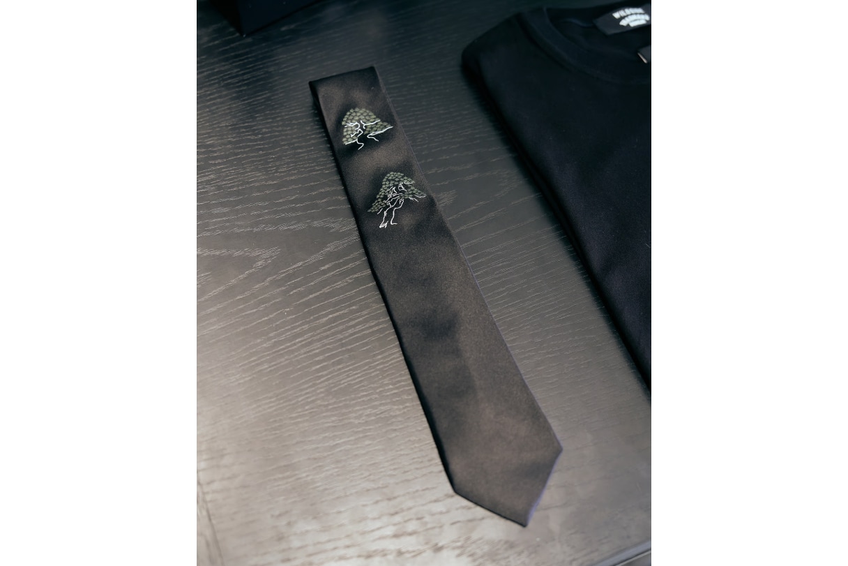 小木:あと、ネクタイは僕自身ヨウジヤマモトの刺繍入りのモノをいくつか持っているので、そこから着想を得て盆栽の刺繍入りを提案させていただきました。